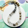 Lite Metallic Multi: lite grey akoya pearl, white and cocoa fresh water pearl, crystal quartz, silver and gold pyrite, assorted fire polish beads