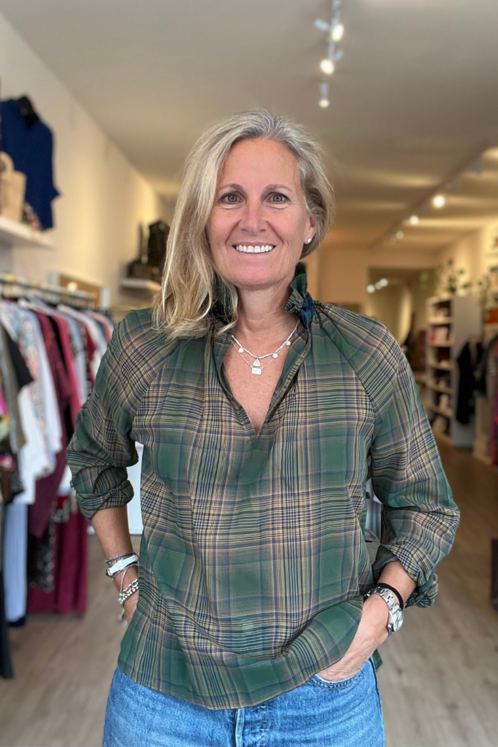 Hartford, Coraz Woven Shirt-Blue/Olive/Brick