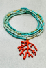 The Makery Collection, Beaded Heartstring Necklace - Turquoise Blue with a Red Coral Charm