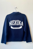 Nothing like wearing the name of a place you love!  The MUSKOKA canoe design varsity Sweater with pockets is a perfect blend of comfort and style. Whether you're hanging out by the lake or enjoying a casual outing, the soft texture and durable construction of this sweater ensure long-lasting wear and comfort. Its clean lines and flattering fit make it ideal for both relaxed weekends and chic, everyday styling.