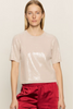 Shimmer made easy. The Sparkle Sequin Sweater in Mother of Pearl is designed to add light-catching glamour to your everyday wardrobe. Featuring a soft, relaxed fit and subtle pearlescent sequins, it brings a refined glow without feeling over the top. The classic crew neckline and short sleeves keep the silhouette simple and versatile, while ribbed cuffs offer a touch of structure. Finished with a comfortable pull-on design, this piece is perfect for day-to-night dressing.