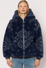 Make a bold statement with the VOLY coat – a standout piece of the season. In ultra-soft faux fur, it catches the eye with its bandana print for a graphic, daring touch. The integrated hood and short cut strike the perfect balance between comfort and style. Easy to pair, it elevates even the simplest outfits.